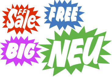 Button-Grundformen als PDF oder EPS downloaden Handgezeichnete, »lebendige« Formen übertreffen jede geometrische Konstruktion. Das beweist nicht zuletzt die Schrift FF Sale, einer der authentischsten Schweinebauch-Schriften auf dem Markt digitaler Fonts. Sie kommt aus dem Mutterland des Einzelhandel-Rabattkampfs, aus Großbritannien. Ihr Schöpfer Tony Booth hat jahrelang für eine Supermarktkette Schilder gezeichnet. Neben den drei Grundschriften FF Sale Light, Medium und Bold hat Booth auch Etikette und Buttons gezeichnet, die in dem mitgelieferten Font FF Sale Dingbats enthalten sind. ![]() Aktionsbuttons aus der Schrift FF Sale von Tony Both, einem britischen Supermarkt-Grafiker Abschließend sei erwähnt, dass sich auch Unternehmen außerhalb des Einzelhandels-Kriesengebiets gerne der Schweinebauch-Ästhetik bedienen, weil sie immer funktioniert und Aufmerksamkeit erzielt. Zwei Beispiele: Emigre: ![]() FontShop: ![]() Herausgegeben: Sa - September 10, 2005 at 11:48 nachm. | |
