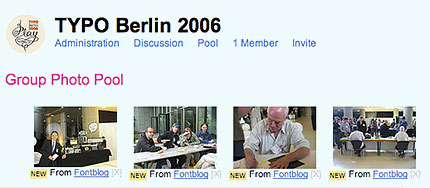 Wir empfehlen – falls noch nicht angeschaut – zwei sehenswerte Diashows mit den Highlights der TYPO 2006: zum einen die Bezauberndste Bilder-Show mit Aufnahmen des langjährigen TYPO-Fotografen Gerhard Kassner, inklusive musikalischer Untermalung. Und dann gibt es noch die auf inzwischen 20 Mitglieder angewachsene TYPO-2006-Gruppe auf Flickr, mit rund 300 persönlichen Impressionen.